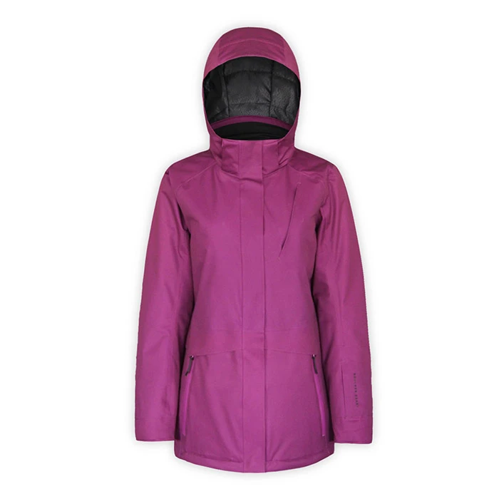 Stay 100% positive water will not seep though your seams in this topper! All seams are 100% taped to keep you dry in the wettest snow with the June jacket from Boulder Gear. With a bold color and bold utility, this jacket features fully waterproof and breathable fabric, a quilted internal lining, and internal wrist cuffs with soft lycra to keep you warm and dry during a shred day. A detachable hood offers more control during warm days, and internal storage pockets lends a hand to snackers and media of choice. Â