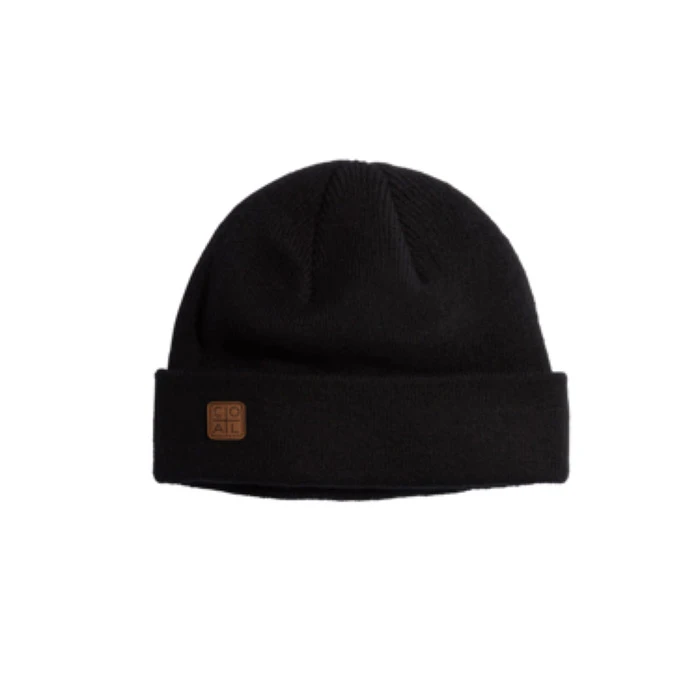 A traditional fine-knit beanie made versatile with two leather labels; wear it classically cuffed or unrolled for oversized modern styling.