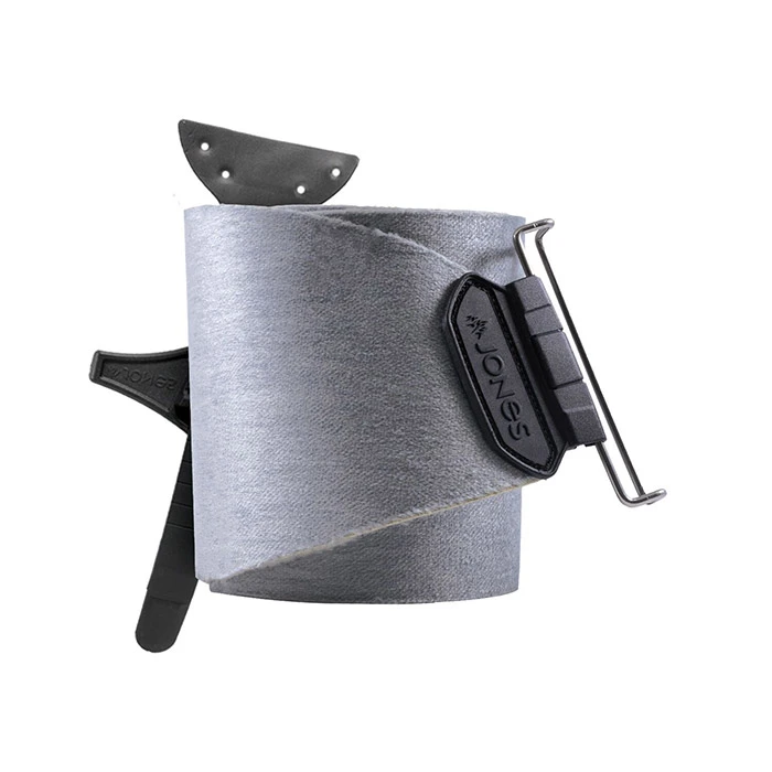 Jones Nomad Climbing Skins are premium splitboard skins that offer the ideal balance of glide, grip and durability. The Nomad skin fibers are 70% Mohair and 30% Synthetic Nylon. The natural mohair fibers deliver exceptional glide in any snow condition because they remain soft and flexible at any temperature. The nylon fibers provide extra traction when the skin track gets steep or icy and improved durability over 100% Mohair skins. Nomad skins come Pre-Cut with Quick Tension Tail Clip. The Quick Tension Tail Clip adjusts in seconds, provides the perfect skin tension and is compatible with all Jones splitboards 2016 and newer. Jones splitboards have a notch cut into the tail of both skis that allows the Quick Tension Tail Clip to simply slide into the notch and secure the skin.