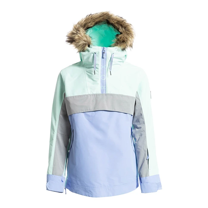 The Roxy Shelter Jacket is here to give you shelter from the storm. This trendy anorak features a removable faux fur hood trim for a customizable look, in addition to a sleek and comfortable fit with a tough, waterproof exterior. The big kangaroo pocket at the front is perfect for storing any little extras you might need to bring to the hill. It even has an internal media pocket so you can take your jams with you while you’re riding.
